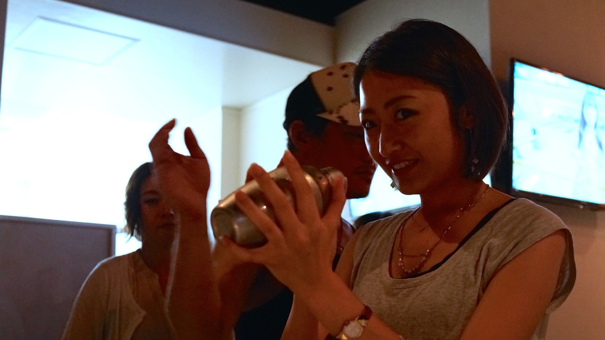 BellB では女性スタッフがシェイカーを握ることもあります。