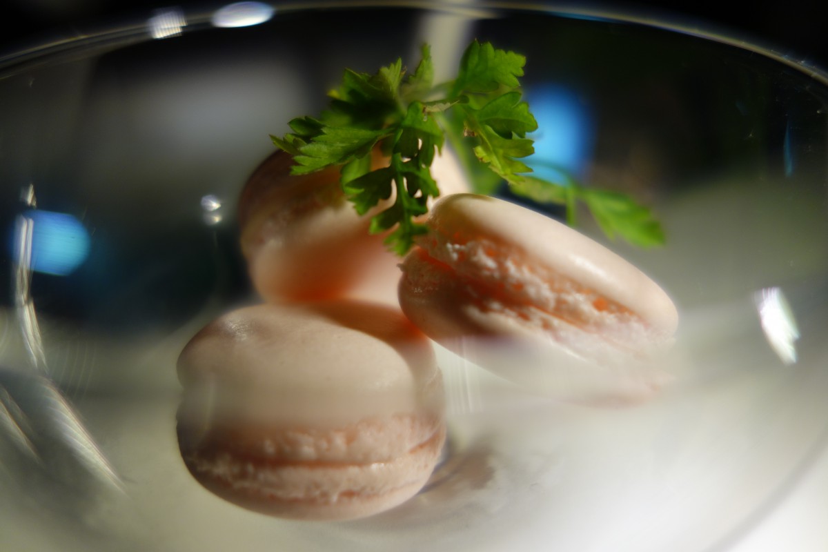 当店、人気のスイーツのひとつでもある手作りマカロンを桜の季節にちなんで、桜のリキュールを使って作ってみました。