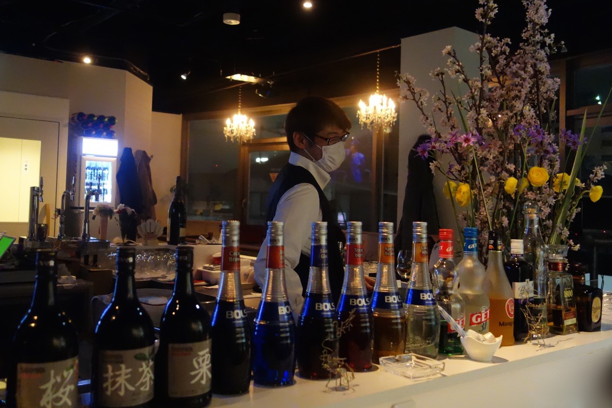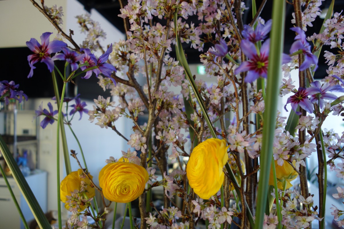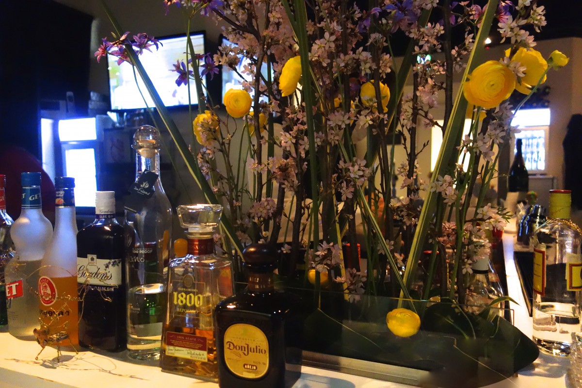 バーなので、ちょっとオシャレに桜をメインに彩りあるお花を添えて、オリジナルでアレンジしてあります。