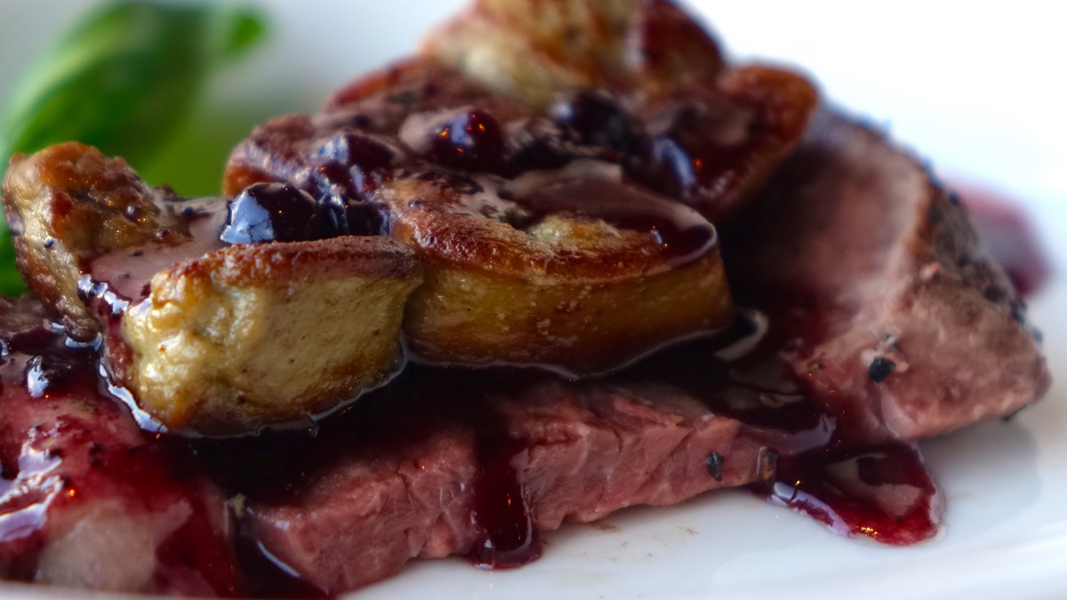 メインディッシュに特選ローストビーフのフォアグラ載せ。